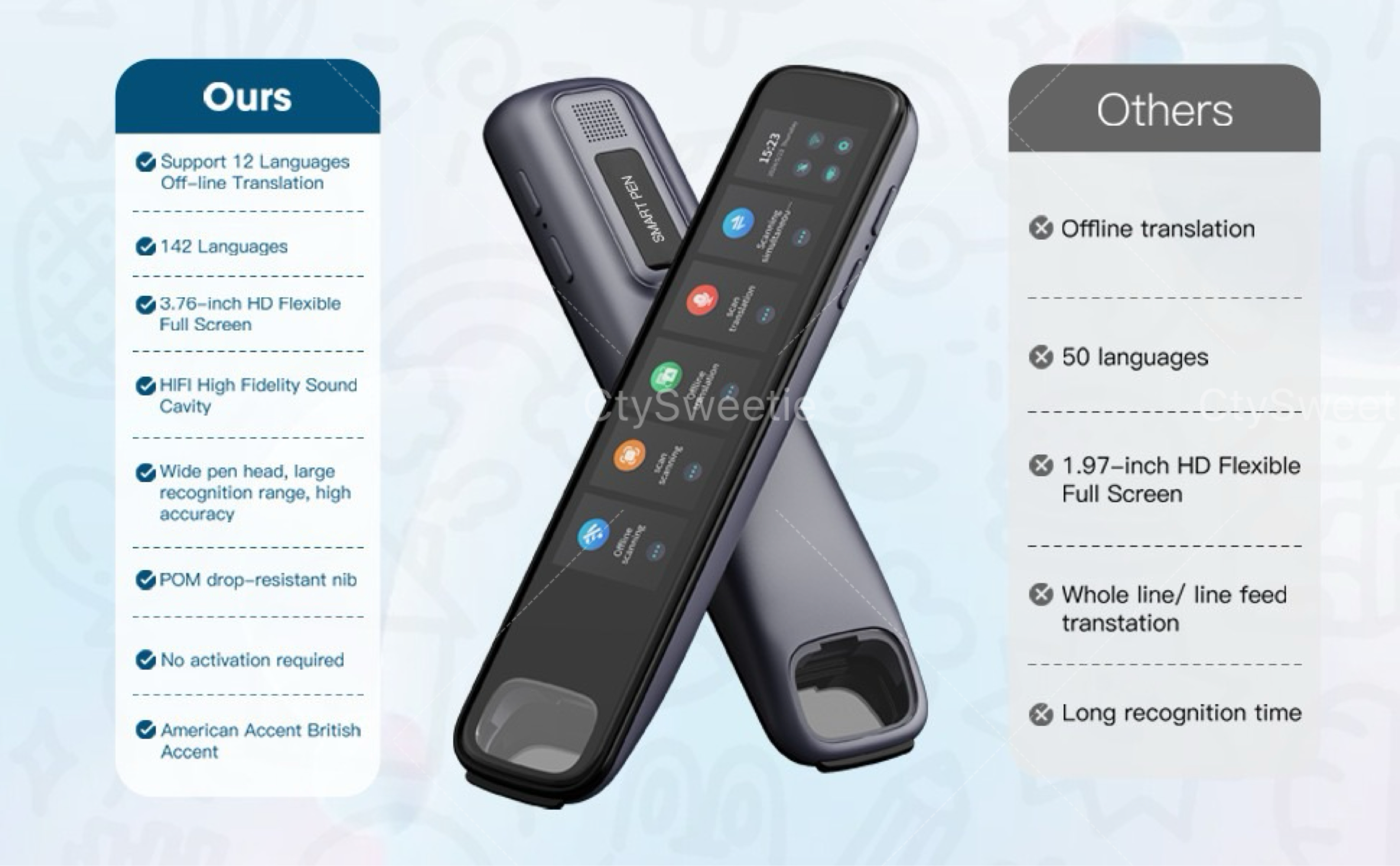 智能翻譯筆😍 可以翻譯142種語言,包括英文、日文、韓文、法文等等。