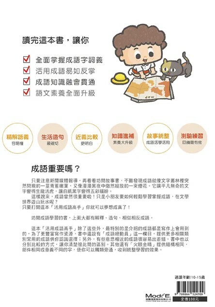 活用成語高手(一冊 & 二冊 & 三冊)🙏🏻🥰 這套書是以分類學習、逐回練習、統整比較的方式來指導小朋友學會成語,透過這樣的方式,來認識、學習成語,你會覺得 1.學習成語很輕鬆👍🏻 2.學習成語很深入👍🏻 3.學習成語很有趣 👍🏻 🅰️🥰💪🏻 21cm X 29.7cm / 100頁 / 平裝 / 全彩印刷 一套三本
